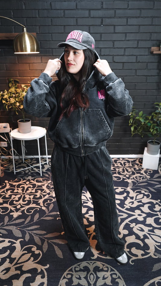 Hoodie Boxy Zip up acid wash negro FIDELIDAD