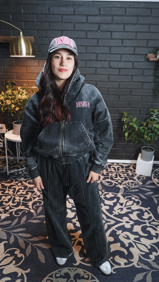 Hoodie Distressed Relaxed YESHUA PINK + Baggy Pant Dabar