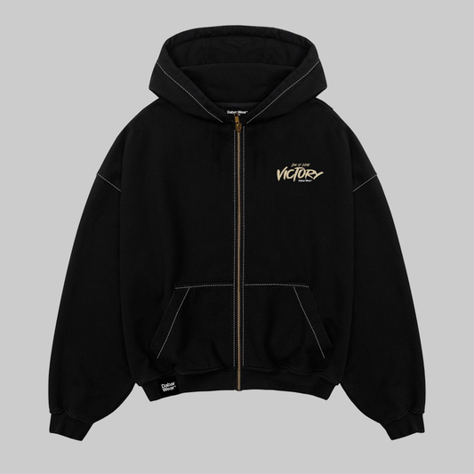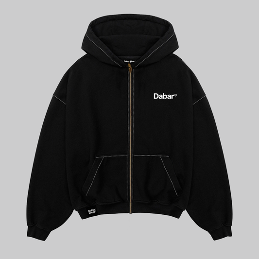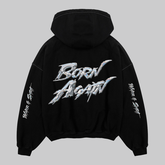 Hoodie Boxy Zip up acid wash negro BORN AGAIN
