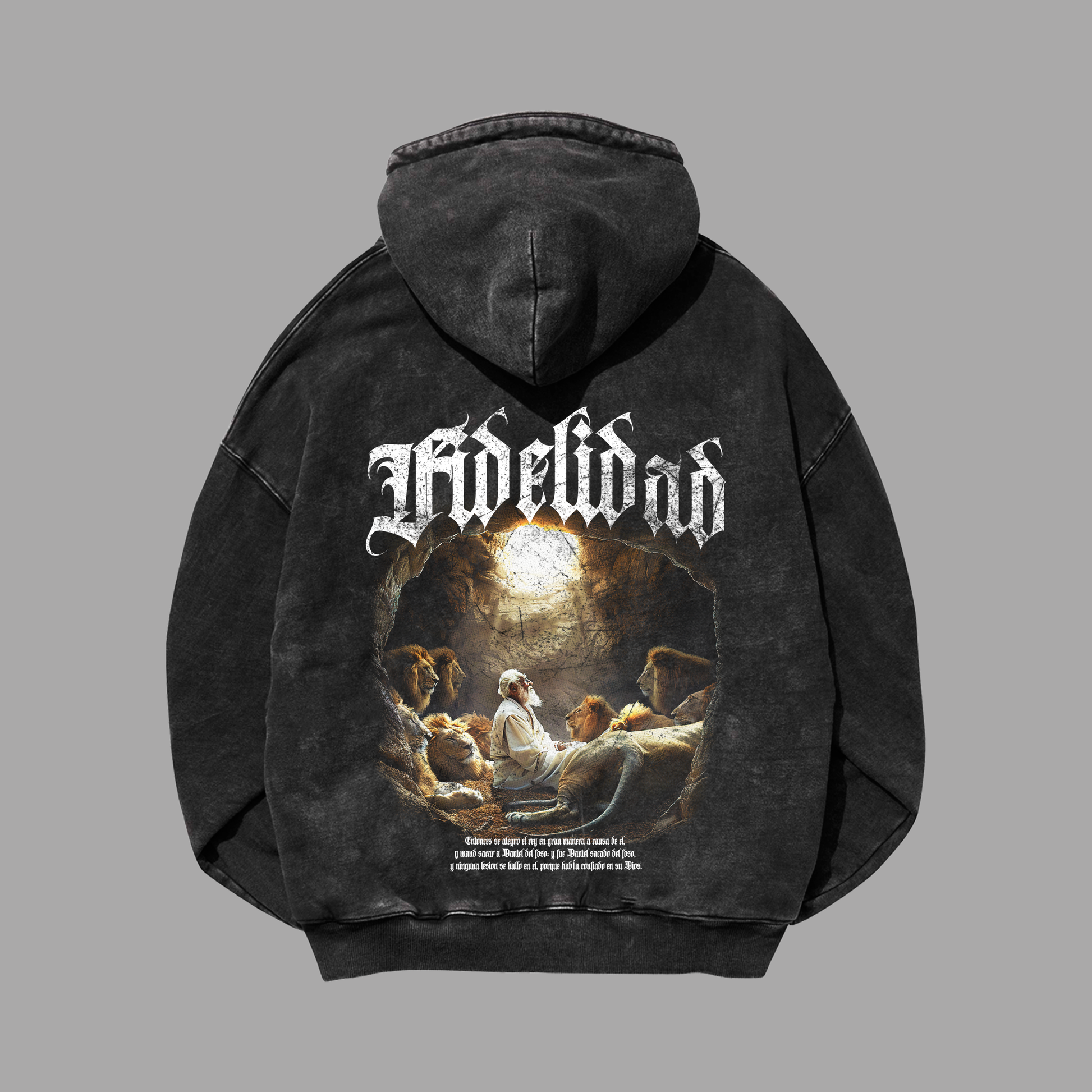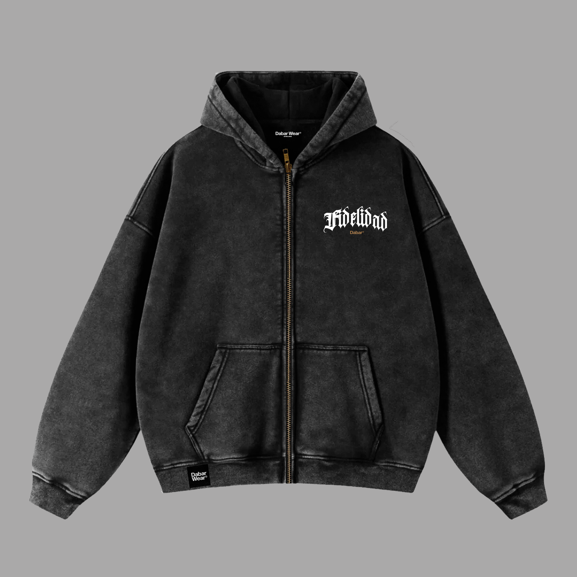 Hoodie Boxy Zip up acid wash negro FIDELIDAD